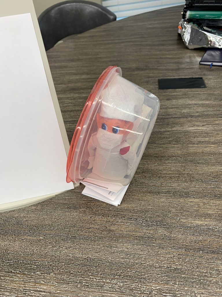 We have an Elf at work that has been through so much. From the time clock keeper to a coffee drinker, this Elf has seen it all.