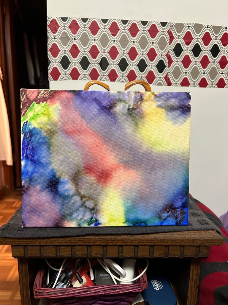Looks like fun. List of supplies: canvas, sharpies, rubbing alcohol, spray bottle. Instructions: use sharpies to do what you want to a piece of canvas. Draw a picture. Or just go hog wild with scribbles. Your choice. Picture from Pinterest.