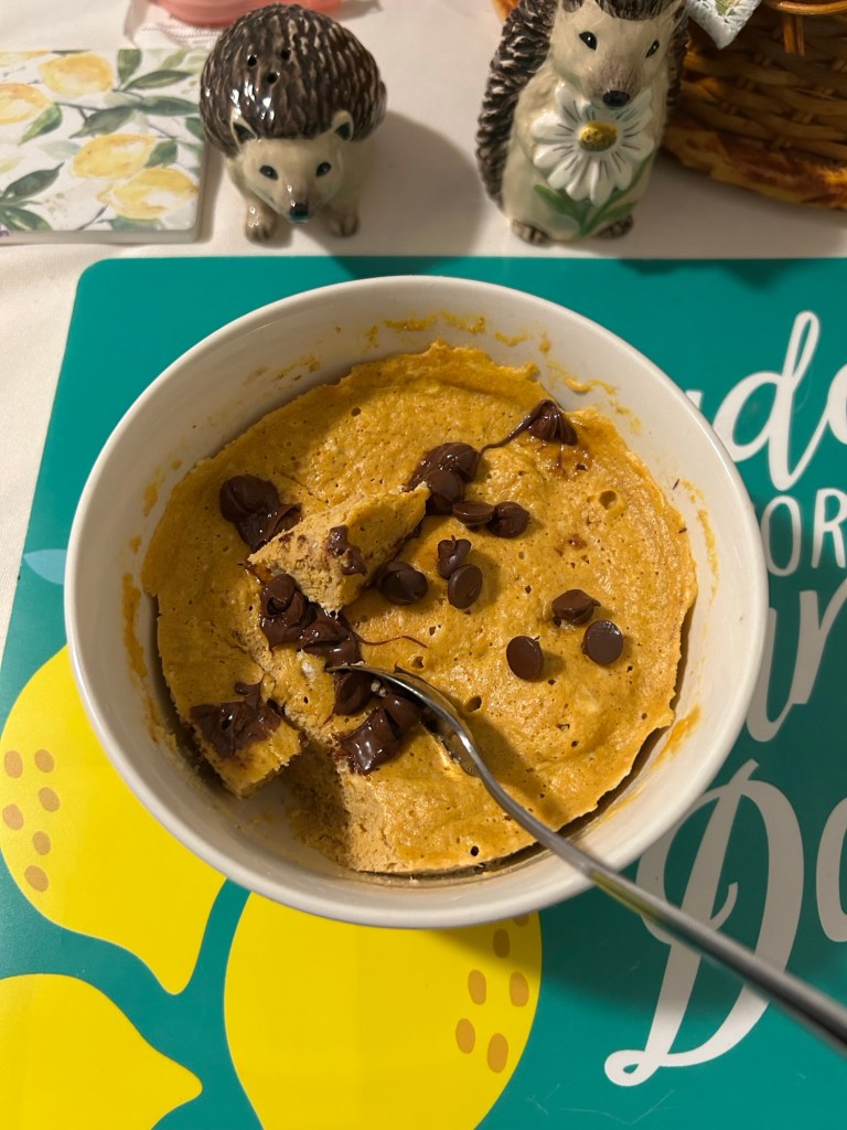 Microwave for 1 minute. Use a toothpick or a knife to check that the mug cake is cooked all the way through (it should come out clean). If not, cook for another 30 seconds, or until done.