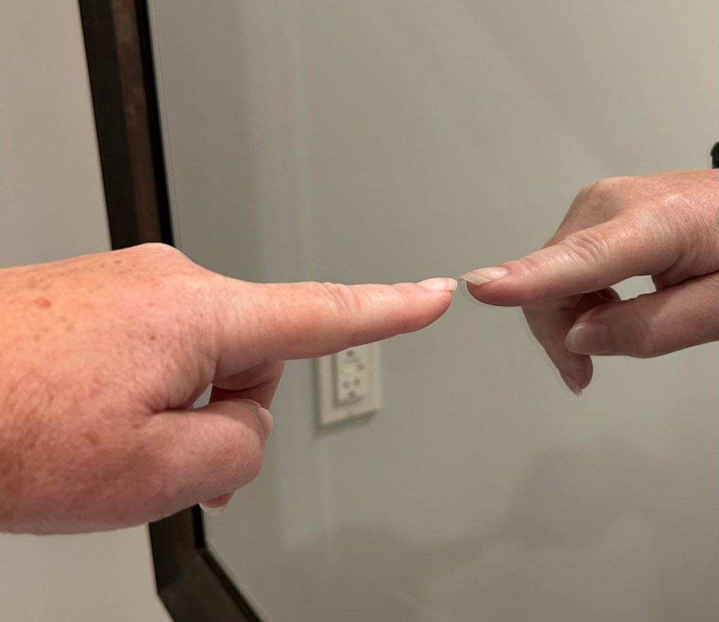 She pointed her finger at me. An independent action. I did the same. She reached the pointed finger at me. As our fingers got closer, yellow and orange sparks of light flew from our finger tips. This didn’t hurt it was more of a tingle. A tickling sensation. I drew my finger back sharply. But she didn’t. So I tried again. The closer we got, the more sparks flew. It was like putting to lit sparklers together and watching them burn down.