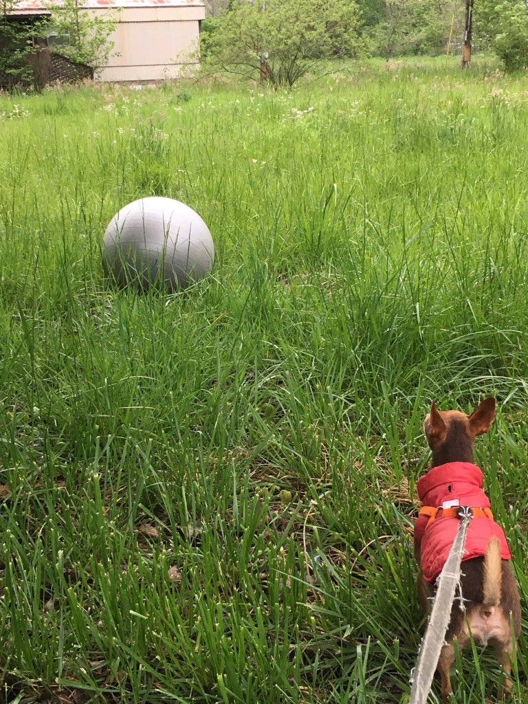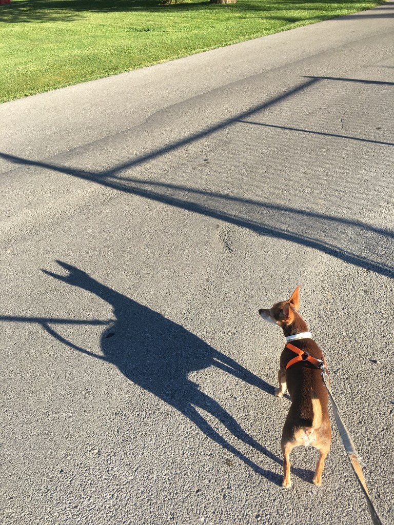 At the beginning of the video, he’s standing an his back paws. I think that is super cute. I’m not pulling in the leash either. At the end of the clip when he turns his head; I can imagine him saying, “that thing again.” 😂
