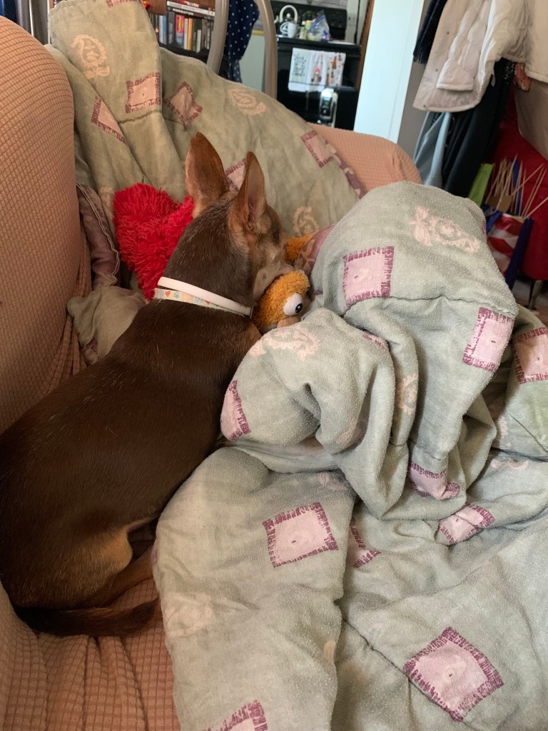 Cheekie has been in my life 8 years. I’m still learning the frontier.What freaks him out? What causes him to pout?What gives him joy? I know his favorite toys.Thunderstorms are a no-no. He’s quite plan when he needs to go.Yes, this is him. He thinks he’s 10 feet tall. When; in reality, he’s really small.Curious all around. Barking at all the sounds.He’s such a ham. He knows he’s worth every gram.Good smells from the kitchen? I’ll wait. Just don’t leave me in this state.Ready for play time! All the things are mine. Mine. MINE!