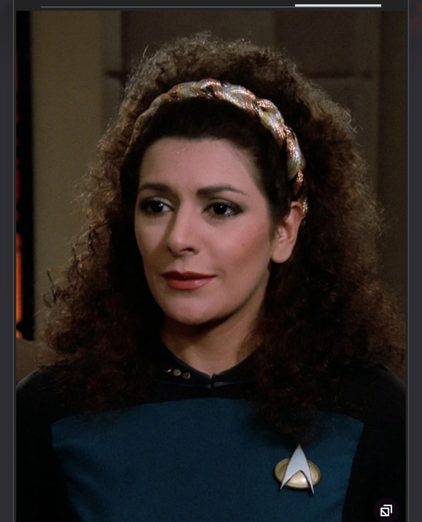 “I have been feeling something strange. I say something because I can’t identify it. It is like butterflies in my stomach. I first felt it when we saw the rabbit on the holodeck.” Deanna sighed.