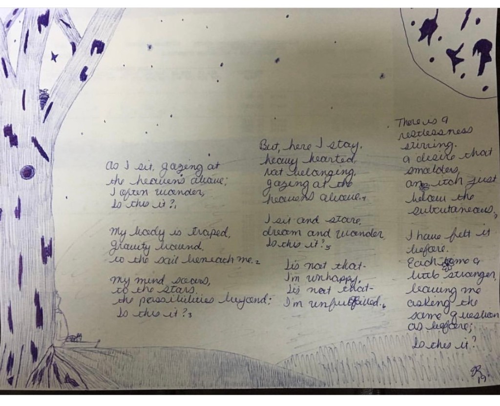 He turned to look at her. Tears streaming down his face. “Beautiful, hummin’ bird. Beautiful.”
